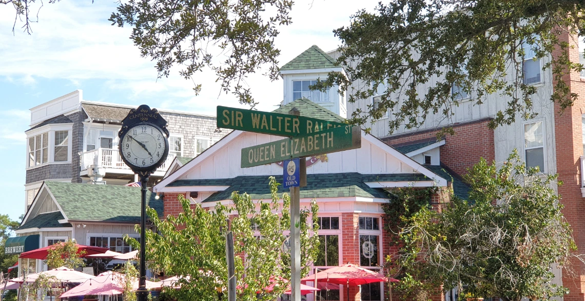 1584년 신대륙 탐사대가 노스캐롤라이나 해안에 도착하고 원주민들의 성대한 환영을 받는다. 원주민들은 그곳을 로아노크라고 불렀다. 이 탐사대는 영국으로 돌아와서 해당 지역이 식민지 건설에 적합한 곳이라고 보고한다. Raleigh경은 처녀의 몸으로 여왕직을 수행하고 있는 엘리자베스 여왕을 기려 그 지역을 버지니아(Virginia – 처녀의 땅)라고 명명한다. 탐사대는 영국으로 돌아올 때 원주민 청년 2명을 함께 데리고 왔는데, 그들의 이름이 바로 Manteo와 Wanchese이다.