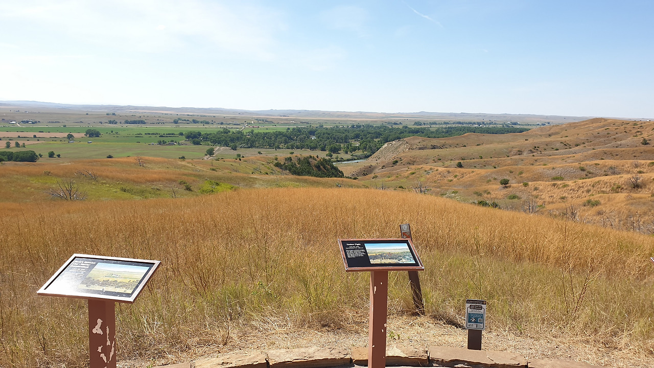 리틀빅혼 전투지는 리노와 벤틴 그리고 커스터의 부대가 전투를 치른 위치를 시간 순으로 따라가며 살펴볼 수 있도록 도로상에 안내판이 마련되어 있다.