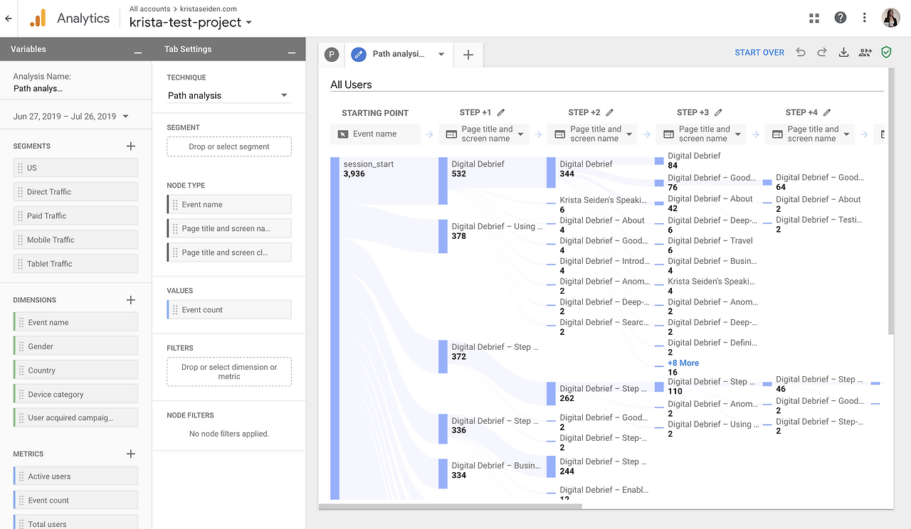 사실 내가 개인적으로 가장 기대하는 것은 GA4의 Pathing analysis이다. UA의 Behaviour/User flow에 대한 끔찍한 기억 때문에 별로 기대하지 않았지만, Google의 PM이었던 Krista의 글처럼 이번 Pathing analysis는 몇 가지 새로운 점을 가지고 있다.
