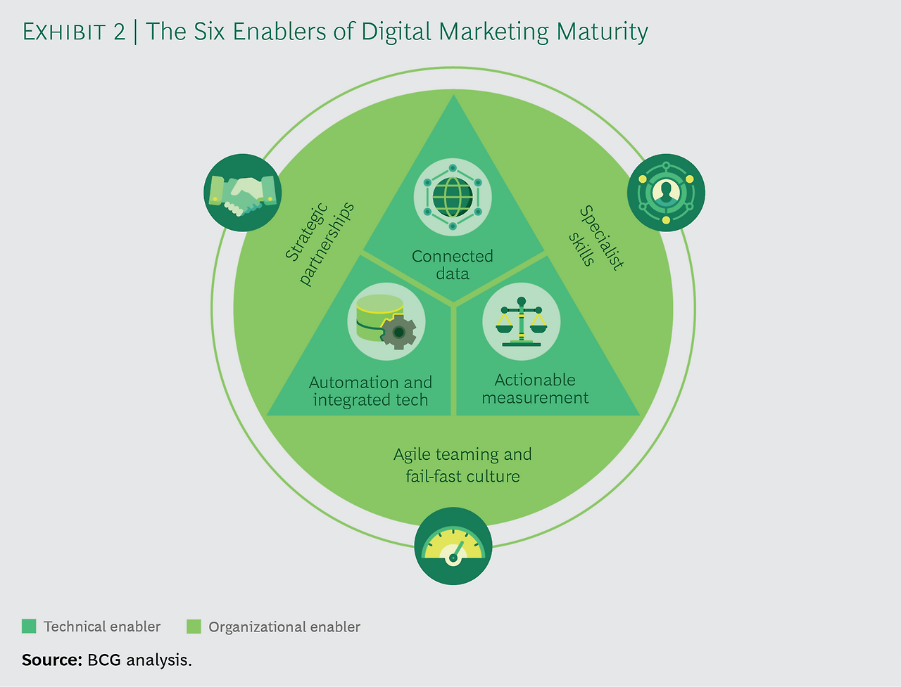 보스턴 컨설팅 그룹(BCG)과 구글이 함께 연구한 Digital maturity framework는 위 경우를 포함해 사뭇 다른 아래와 같은 질문들에 대해 전략적으로 접근할 수 있게 돕는다.