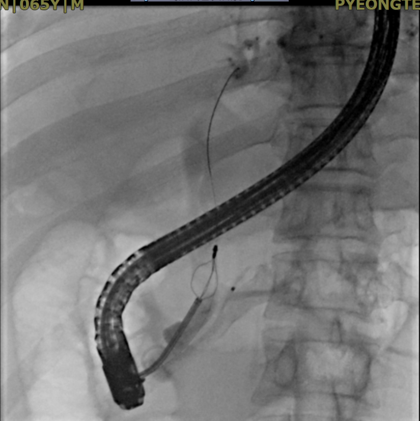 오늘 오후 눈이 노란 황달 환자가 외래로 왔습니다. 저도 인간인지라, 가족과의 저녁식사 시간이 소중합니다. 하지만, 이 환자분의 신체상태와 피검사결과(빌리루빈 정상수치가 1.2 정도인데 이 환자는 10이 넘었습니다.), CT를 종합하였을 때 오늘 저녁에 시술하지 않으면 매우 위험할 것으로 판단되어 ERCP를 오후 늦게 시작하였습니다. 다행히 시술을 잘 되어 담석을 부수는 데 성공하였고 (아래 그림 참조), 회진을 돌 때 환자분은 속이 편안하다고 웃으셨습니다.