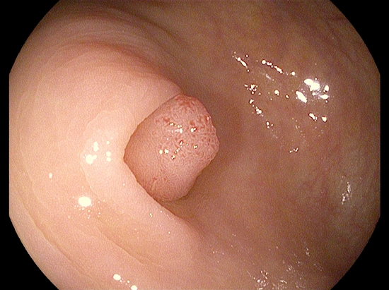 그림 1: 맹장 입구에서 관찰되는 용종 -예시