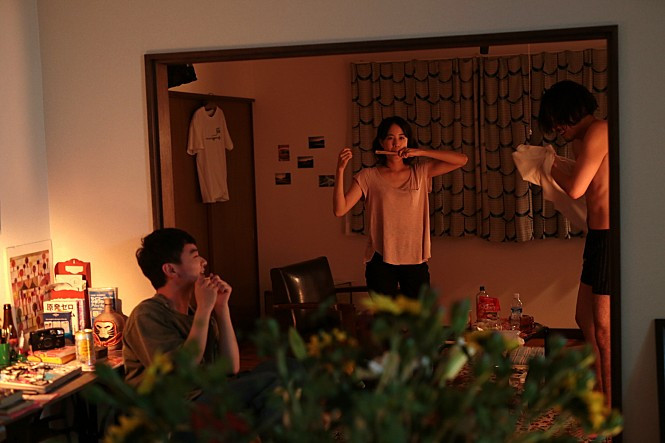 하나, 둘, 셋...숫자를 세기 시작해 120까지. 미야케 쇼 감독의 영화 '너의 새는 노래할 수 있어'는 어딘가 이곳에 잘 보이지 않는 시절의 이야기다. 주인공 '나'는 잠깐 눈길이 스친 여자를 기다리며 의미없는 숫자를 하나씩 더하기 시작하고, 그 사이 여자는 뒤를 돌아 그에게 다가오고, 같은 서점에서 함께 일을 하면서도 둘은 그렇게 만난다. 동거하는 친구 시즈오(소메타니 쇼타)와 숫자 120보다 먼저 도착한 여자 사치코(이시바시 시즈카)와 에모토 타스쿠가 연기하는 '나'의 조금은 이상한 여름 한 철 스토리. 꼼꼼히 따지고 보면 셋의 그 시절은 때로 복잡하기 그지없지만, 영화는 성가시고, 귀찮고, 번거로운 그런 날들에 별로 관심이 없다. 굳이 묻지 않고, 애써 말하지 않고, 부러 외면하며 세 남녀 사이를 부유하듯 배회한다. 각자의 사정을 품고 있는 '나'와 시즈오와 사치코는 함께있지만 홀로 존재하고, 셋의 느슨한 이어짐은 어딘가 작은 세계의 꼭지점처럼도 보인다. 네모도, 동그라미도 아닌 세모의 세상. 이야기의 얼개를 풀어가는 건 서점 직원이 이야기하듯 '성실하고', 고리타분하고 그렇게 짜여진 익숙함이 아니고, 언젠가 끝나버릴 여름 날의 예고된 이별, 그런 아찔함, 시(詩)와 같은 불안감이 술에 취해 느슨하게 흘러간다. '나'와 섹스를 한 그 아침, 사치코는 "질척한 건 싫어(面倒っ臭い)'라고 이야기한다. 그들은 이미 지금의 마지막을 알고있다. 한 번의 여름 밤이 끝나가던 무렵, 우리는 청춘을 잃는다.