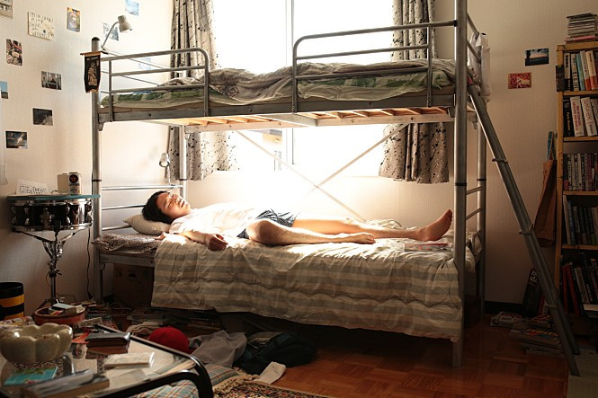 '너의 새는 노래할 수 있어'라는 조금은 어색한 문장, 비틀즈의 노래를 그대로 옮겨온 'and your bird can sing'은 1966년의 곡이고, 원작이 된 사토 야스시의 소설은 1981년 작품, 미야케 쇼 감독과 주인공 에모토 타스쿠는 2년 터울의 80년대생에, 소메타니 쇼타와 더불어 셋은 실제 함께 '술 마시고 놀고', 굳이 이야기하면 친구처럼 지내는 사이라고 한다. 별 것도 아닌 그와 그들의 사소한 사정을 굳이 이갸기하는 건, 이 영화엔 느슨하게 이어지는 친밀함, 그곳에만 보이는 남다른 시선이 세밀하다. 줄거리보다는 시퀀스, 스토리보다는 무드, 대사와 함께 사운드, 음악으로 이야기하고 싶어지는 알 수 없는 내밀함이 특유의 정서를 만든다. 얼마 보지도 않았는데, '나'가 직장에 적응하지 못(안)한다는 건 한 눈에 알 수 있고, 점장과 사치코와 성의 없는 인사를 하는 장면에 조심스레 흐르던 전자 사운드는, 사치코가 '나'에게 작은 제스춰를 취한 순간 돌연 자리를 떠버린다. 그런 수상한 공백. 2층 침대에서 위아래로 자는 '나'와 시즈오는 그렇게 완성되는 침대의 한 쌍이고, 배를 바닥에 납작 붙이고 바라보는 작은 방 구석구석의 풍경은 어쩌면 평생 보지 못하고 지나갈 그림인지 모른다. 서점의 이혼남 점장과 불륜 관계를 갖고있는 사치코, 돈을 빌릴 때가 아니면 연락이 없는 엄마와 이름만 몇 번 지나갈 뿐 모습을 드러내지 않는 형, '나'는 도통 알 수 없는 인물에 매일같이 지각, 결근을 하지만, 영화엔 그런 부대낌의 현실이 없다. 사적(私的)이고 시적(詩的)이게 영화는 그저 그 여름의 밤만을 걸어간다. "젊음은 없어져버리는 걸까." 사치코의 이 물음 아닌 물음처럼, 무력하고 애매하고 아리송하고, 이 영화는 그렇게 사랑스럽다. 밤 거리를 서성이는 시간, 그곳엔 도무지 정처가 없다.