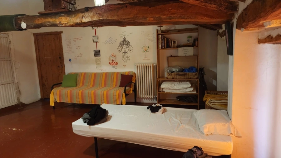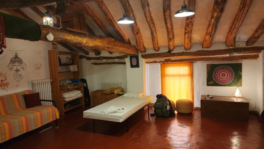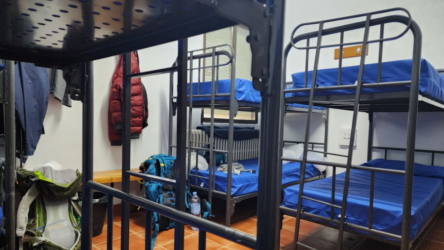 저는 2층 가운데의 가장 넓은 거실에 여유롭게 머물렀습니다. 침대에 누워 쉬던 중, 문 쪽 방에 또 다른 순례자 아주머니가 한 분 계시다는 걸 알게 되었습니다.