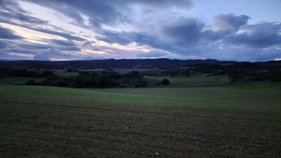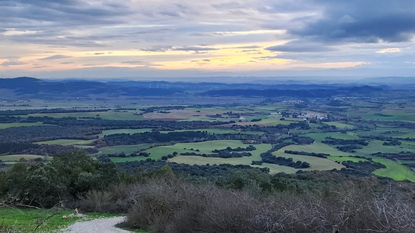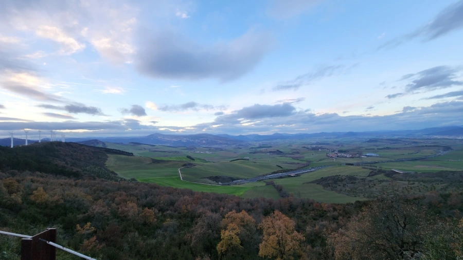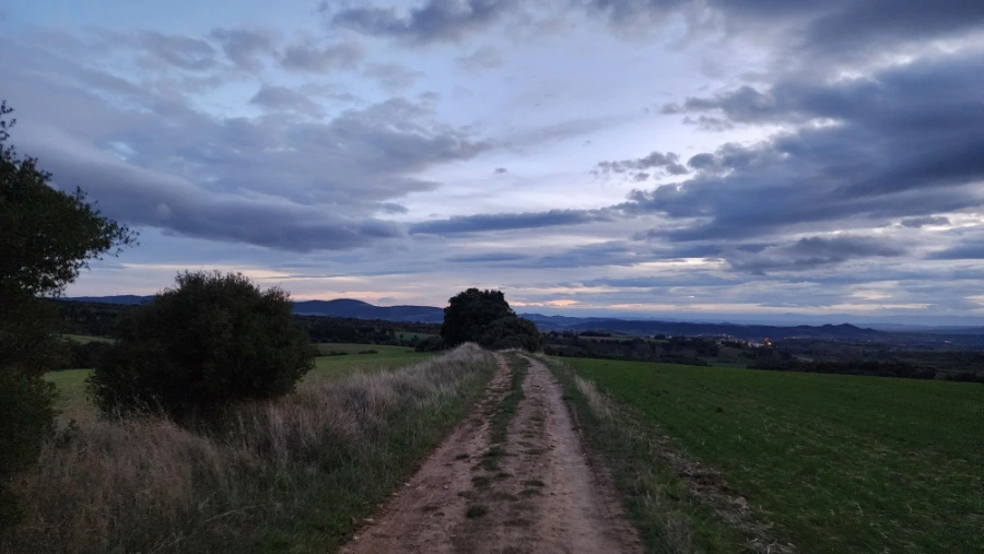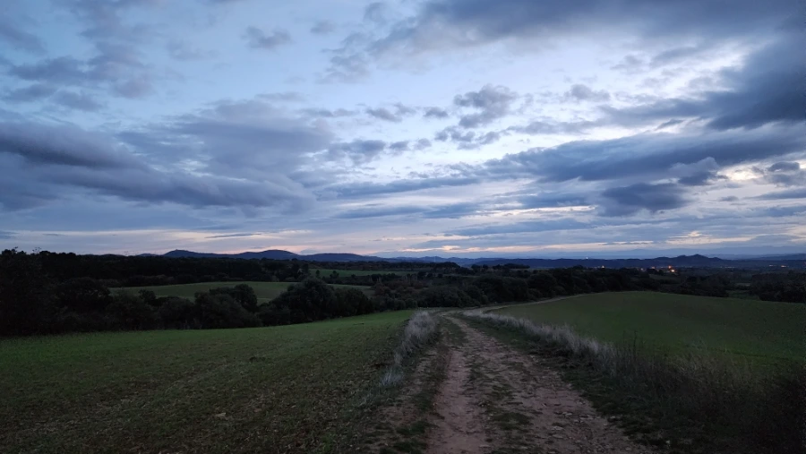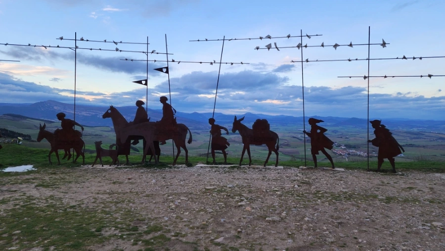 팜플로나에서 너무 늦게 출발한 탓에 해가 지는 무렵에서야 고개 정상에 도달했습니다. 해는 이미 산 너머로 기울고 있었고 남색빛으로 물들기 시작했습니다.