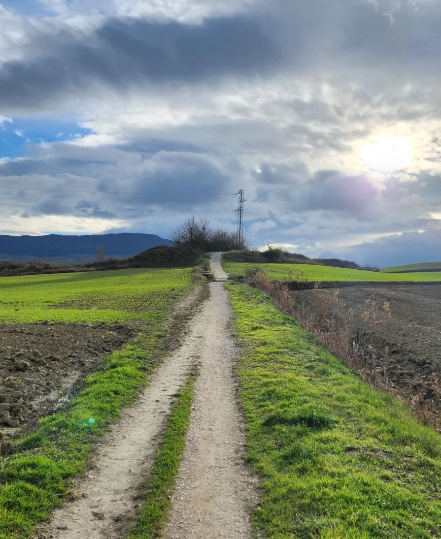 거대했던 팜플로나는 어느새 저 멀리 자그마한 점이 되었고 주변에는 평야만이 보이기 시작합니다. 몇 시간을 걷는 동안 사람 한 명 보지 못하고 비슷한 풍경만 보여 영겁과 고독의 길처럼 느껴졌습니다.