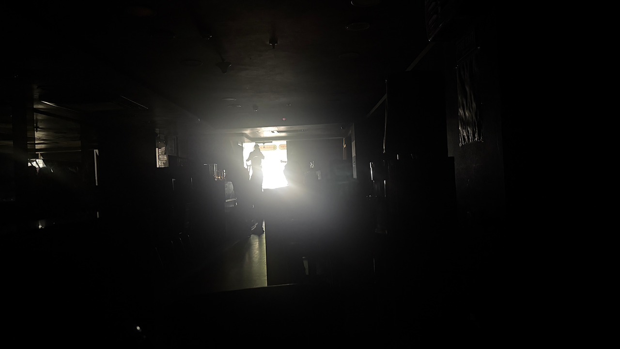 마침내 식당에 도착해 인터넷으로 정보를 찾던 중, 갑자기 정전이 발생했습니다. 헤드랜턴 불빛을 켜서 밥을 먹었고 선풍기마저 꺼져 찌는 듯이 더웠습니다.