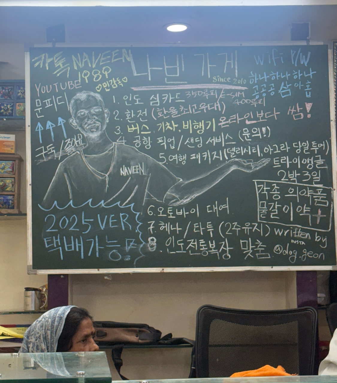친구는 빠하르간지 뒷골목 깊숙한 곳에 나빈이란 인도인의 가게가 있다고 했습니다. 우리는 거기서 잠시 시간을 보내기로 했습니다. 그곳은 아는 사람만 아는 한국인들 사랑방이자 비밀 아지트 같은 공간이었습니다.