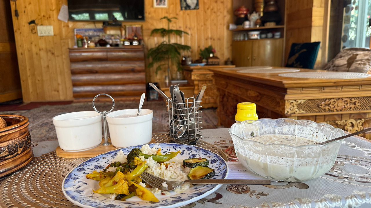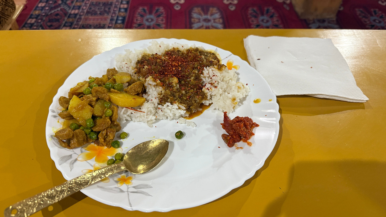 음식 이름은 라다크식 야채 파스타. 생각보다 맛있어서 두 그릇을 먹었습니다. 사잔티에게 머리띠라도 선물해주고 싶었지만 작은 상점도 하나 없어 아쉬웠습니다.