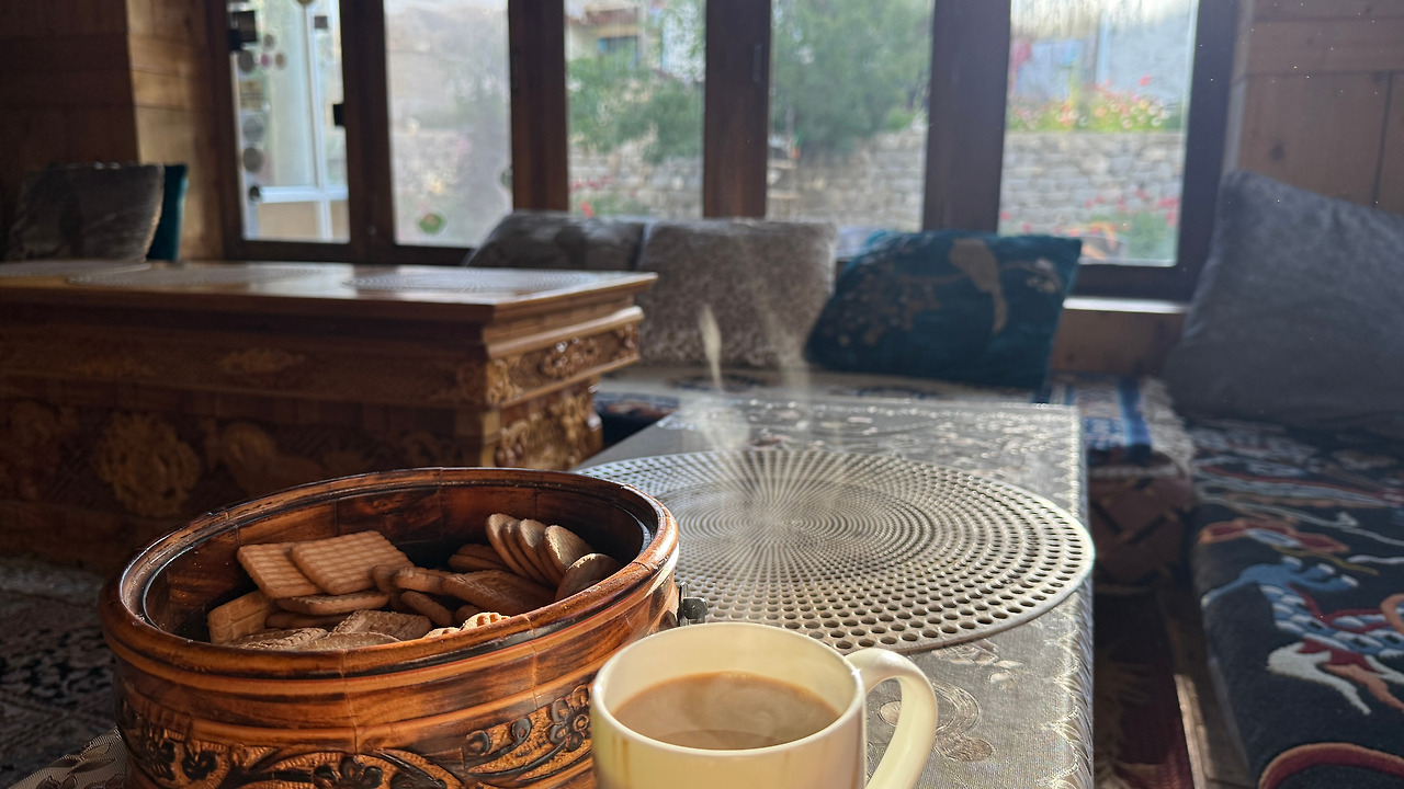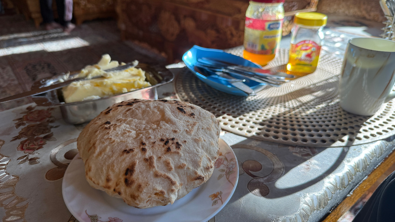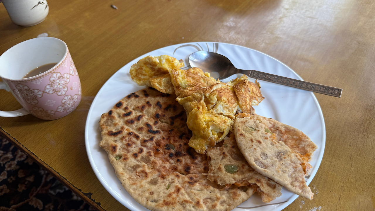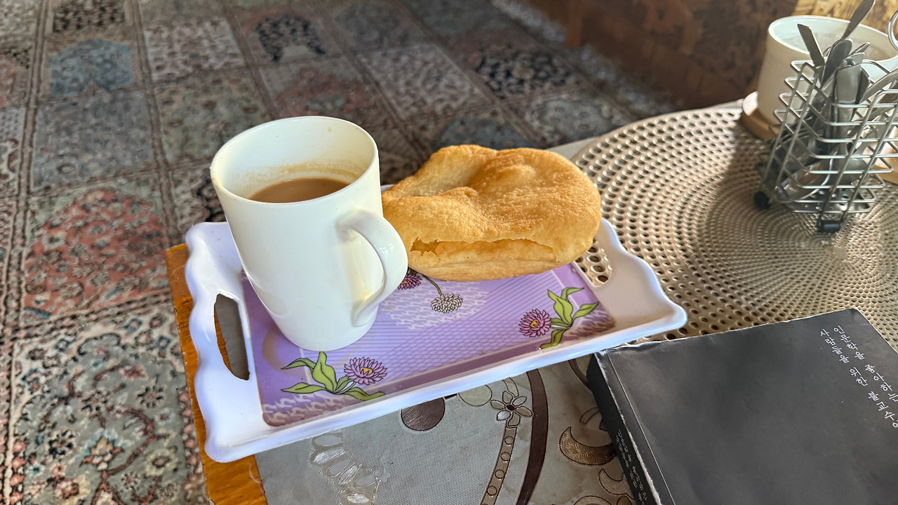 할머니는 혼자 먼 길을 걸어온 낯선 이방인에게 따뜻한 짜이를 내어주셨습니다. 그 뿐만 아니라 어느새 부엌으로 가시더니 계란프라이와 보리가루로 부친 부침개로 점심상까지 차려주셨습니다.