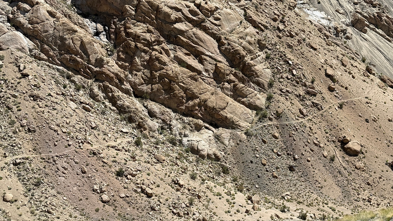 산맥을 따라 걸어 올라갈 수 있는 길은 아주 비좁았고 바로 옆은 아찔할 정도로 가팔랐습니다. 투박한 소리가 들리더니 맞은편 언덕에선 낙석이 쏟아졌습니다.