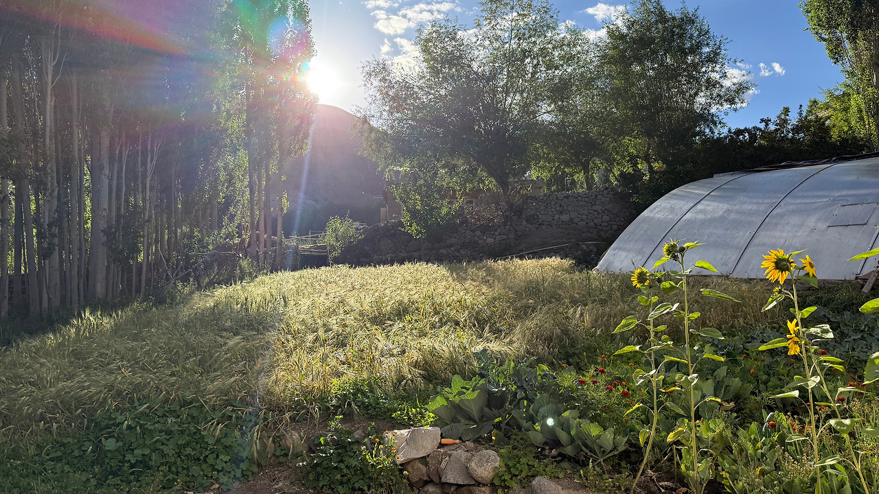 제가 머문 곳은 밀밭과 해바라기가 가득한 정원이 있는 집이었습니다. 현금이 500루피 부족했는데, 주인 할아버지는 흔쾌히 머무는 걸 허락해 주셨습니다.