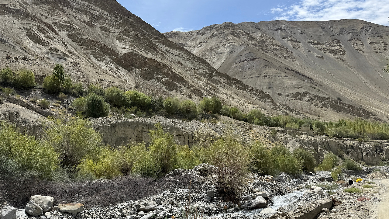 샴의 인더스 지류를 따라 걷다 보면 이따금씩 강가 주변에 빨래터가 눈에 들어옵니다. 돌담으로 쌓아 올린 작은 밭과 보리를 말리는 지붕. 히말라야의 가혹한 자연 속에서도 끈질기게 이어져 온 삶의 흔적들입니다.