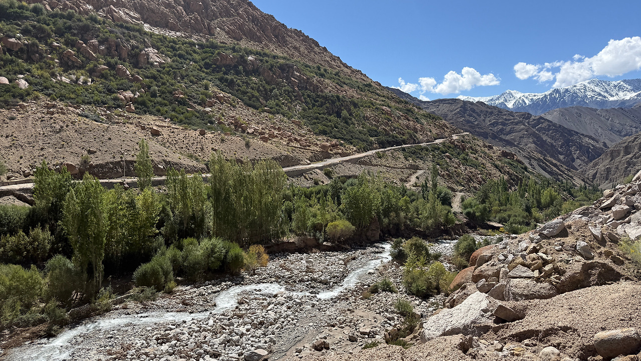 리키르라는 마을에 도착하고 차에서 내려 광활하고 고요한 협곡을 향해 발을 내디뎠습니다. 붉은 암벽이 양옆으로 솟아오르고 그 사이 흐르는 청록빛 인더스 강. 한 걸음 내디딜 때마다 히말라야의 거대한 시간 앞에서 가슴이 벅차오를 수 밖에 없었습니다.