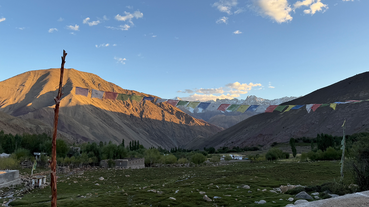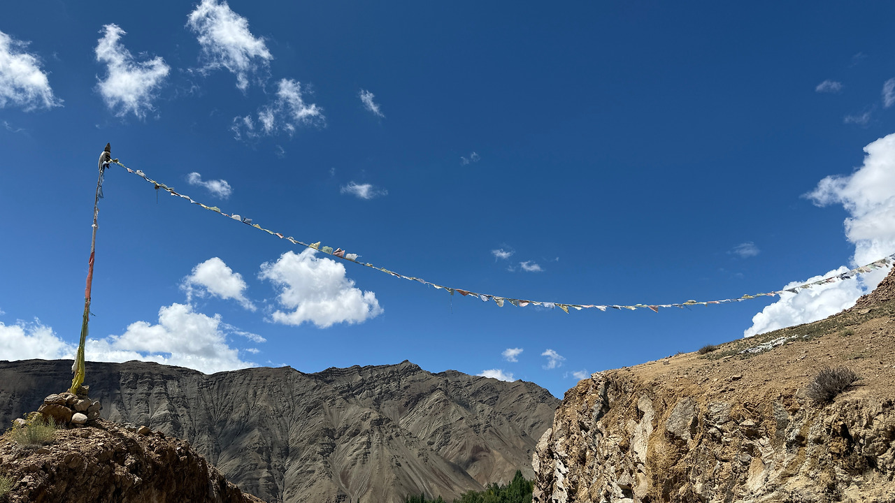 티베트 불교의 기도 깃발, 룽따(རླུང་རྟ་)는 바람에 흔들리며 기도와 소망을 실어 보냅니다. 여행의 마지막은 라다크 서쪽, 샴의 협곡(ཤམ་ལུང་པ།)을 홀로 넘는 것입니다.