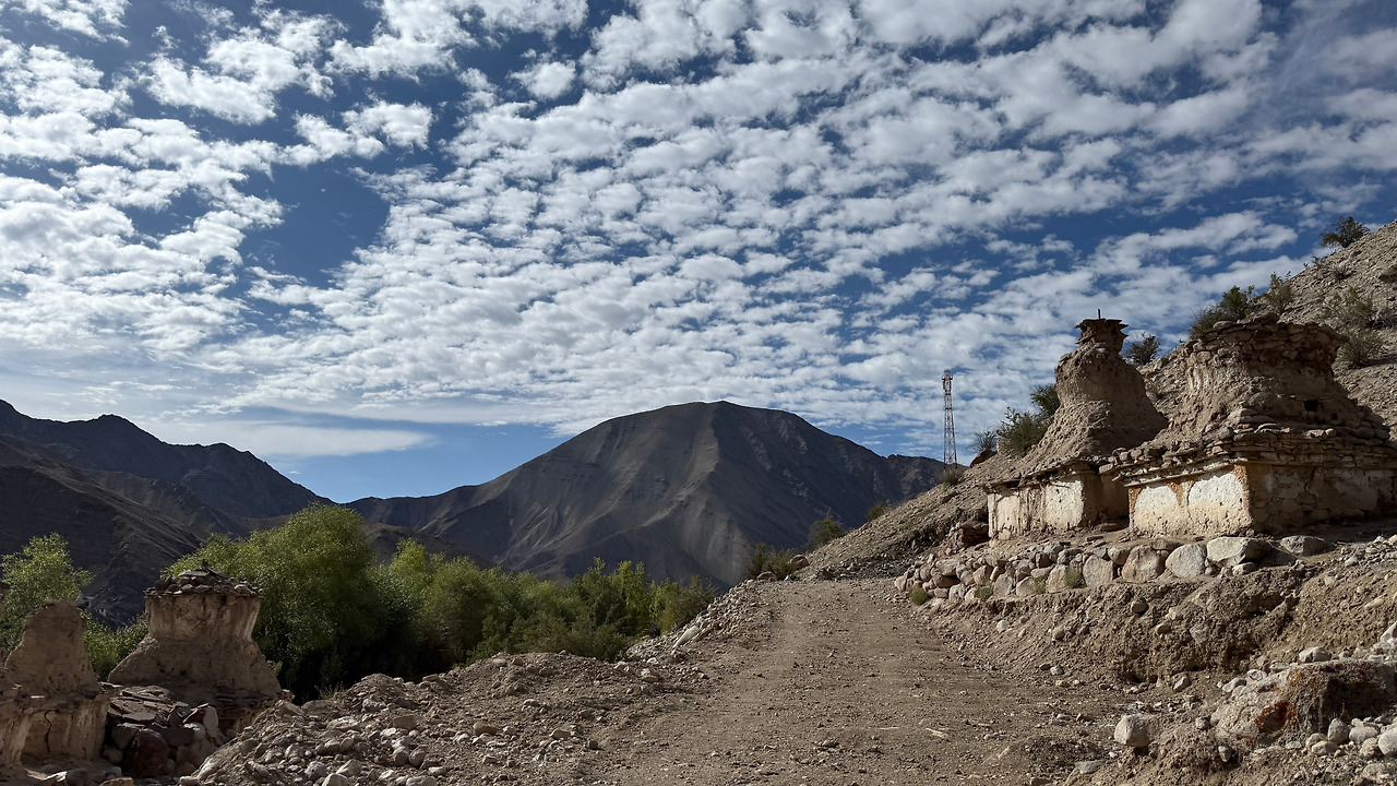 오늘의 목적지인 헤미스 슉파찬. 슉파찬이라는 이름은 티베트어로 작은 나무들을 의미한다고 합니다. 실제로 이곳은 라다크에서 보기 드물게 살구나무와 버드나무 숲이 있는 마을입니다. 흙벽돌과 나무로 지은 라다크 가옥들이 좁은 돌길을 따라 미로처럼 이어집니다.
