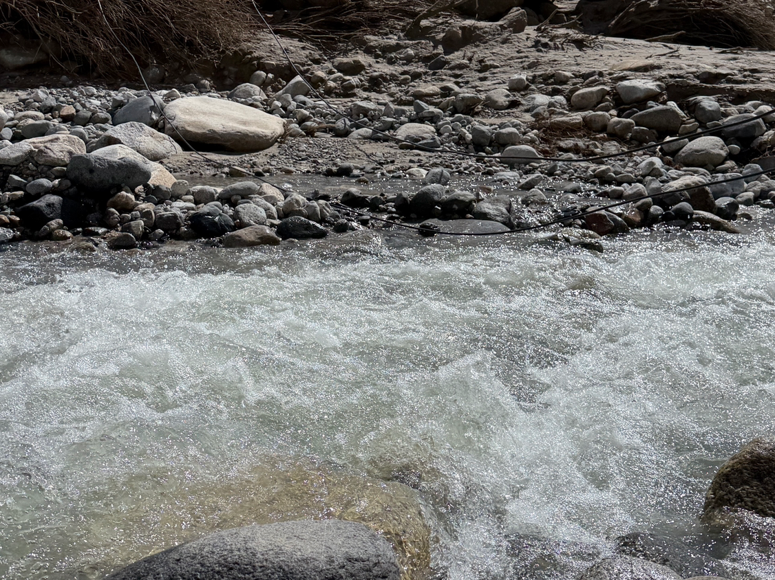 강을 건너기 위해 신발을 벗어 건너편으로 던지고 바지를 무릎 위까지 걷어 올렸습니다. 발을 담그는 순간 빙하에서 녹아내린 인더스 물살의 차가움이 스몄습니다. 물살이 거세어 균형을 잡기 위해 신경을 집중했습니다.