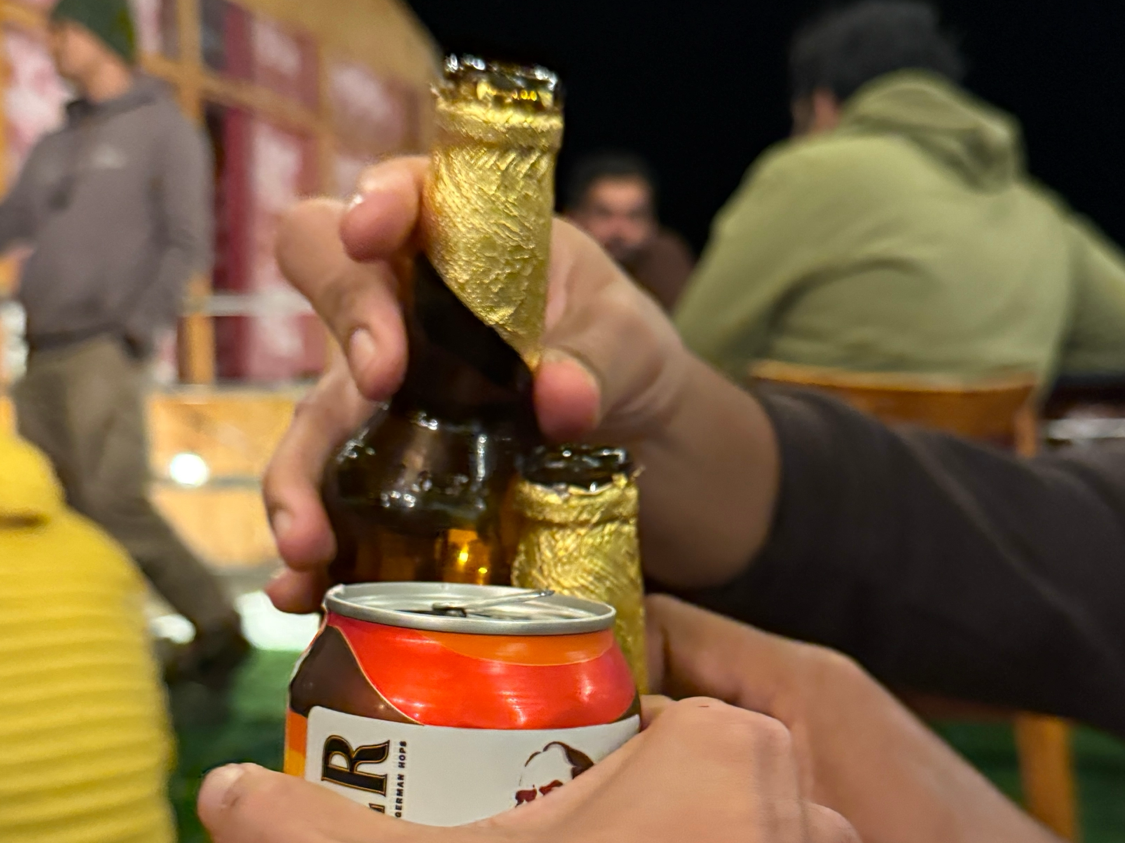 하이델, 라다크 마라톤에 참여하기 위해 뭄바이에서 막 도착한 프라쥬, 셋이 루프탑에서 버스킹 공연을 들었습니다. 둘은 금주였기에 논알코올 맥주를 마셨고 저는 창(chang)이라는 보리술로 기분 좋게 취했습니다.