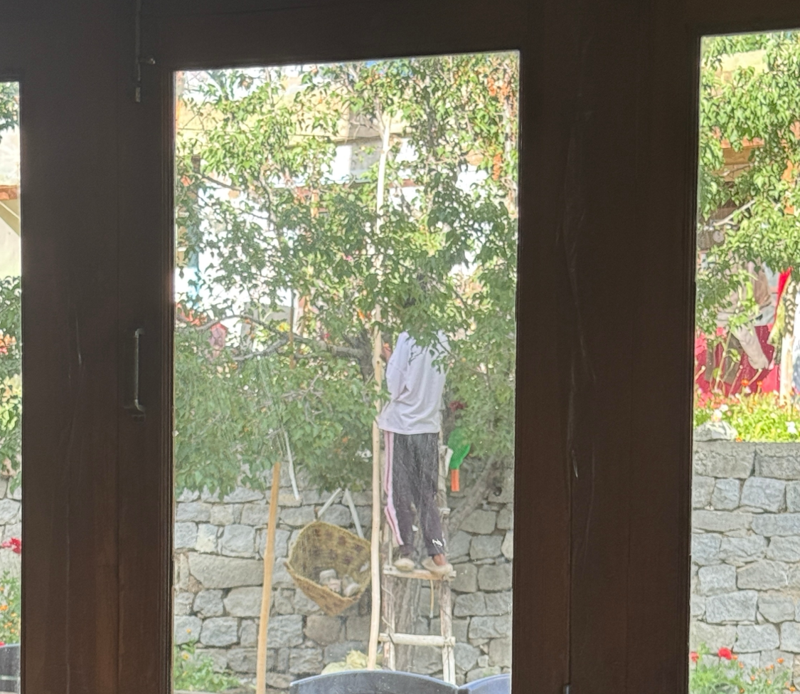 여기서 멈추지 않고 사잔티는 라다크식 짜이와 밀크티, 빵을 내왔고, 심지어 나무에 직접 올라가 살구를 따와 건네주며 쉴 새 없이 먹을 것을 가져다 줬습니다.