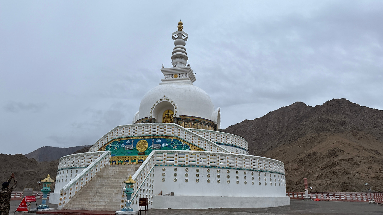 산티 스투파는 일본인 승려와 라다크 불교도들이 세계 평화를 기원하며 세웠다는 불교 기념탑으로 레 근교 언덕 꼭대기에 위치해 있습니다. 정상에선 히말라야 산맥과 레 시내 전경을 한눈에 조망할 수 있습니다.