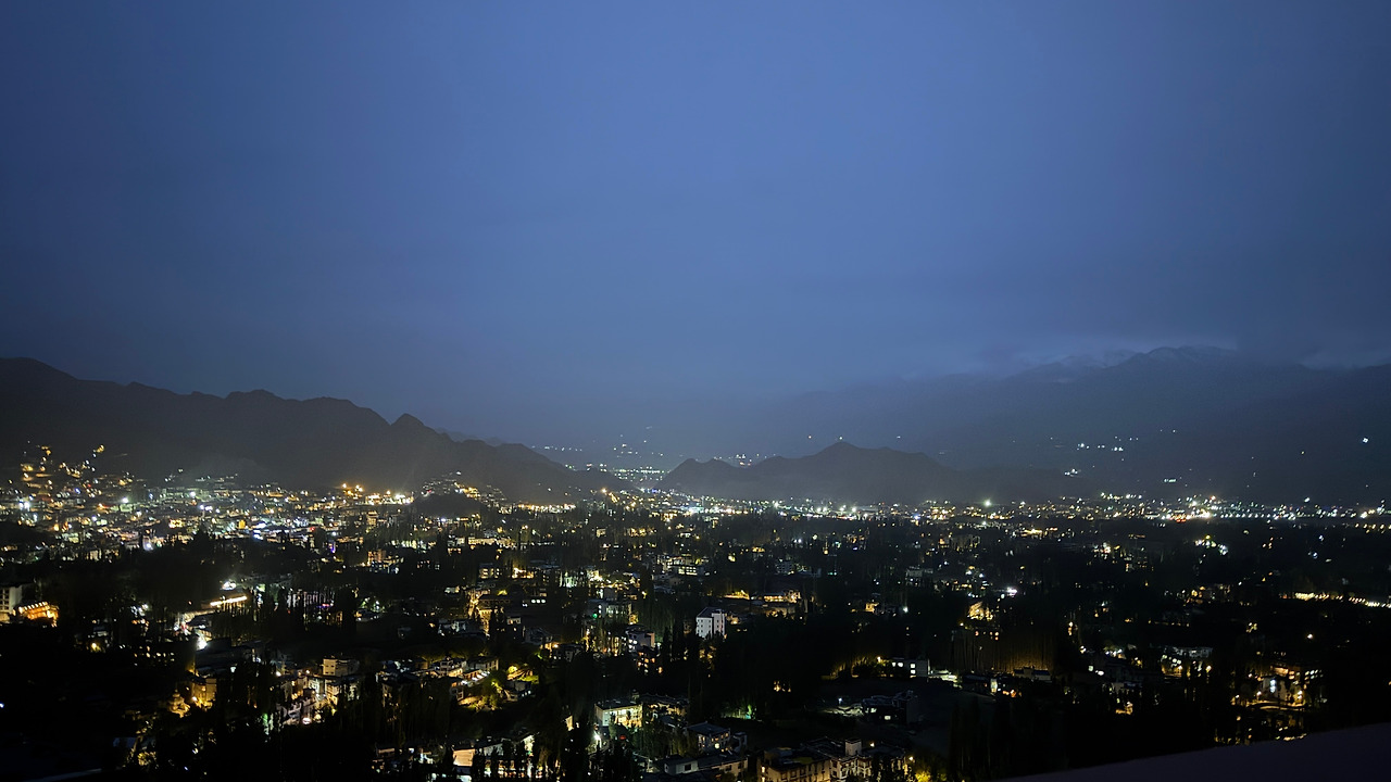 이틀 동안 제대로 할 수 있는건 없었지만 예상보다 빨리 돌아온 전파에 모두가 광장에서 뛸 듯이 환호하던 순간. 우연히 만난 크리슈나와 빗줄기를 가르며 바이크로 언덕을 오르고 정상에서 함께 본 레 시내의 야경.