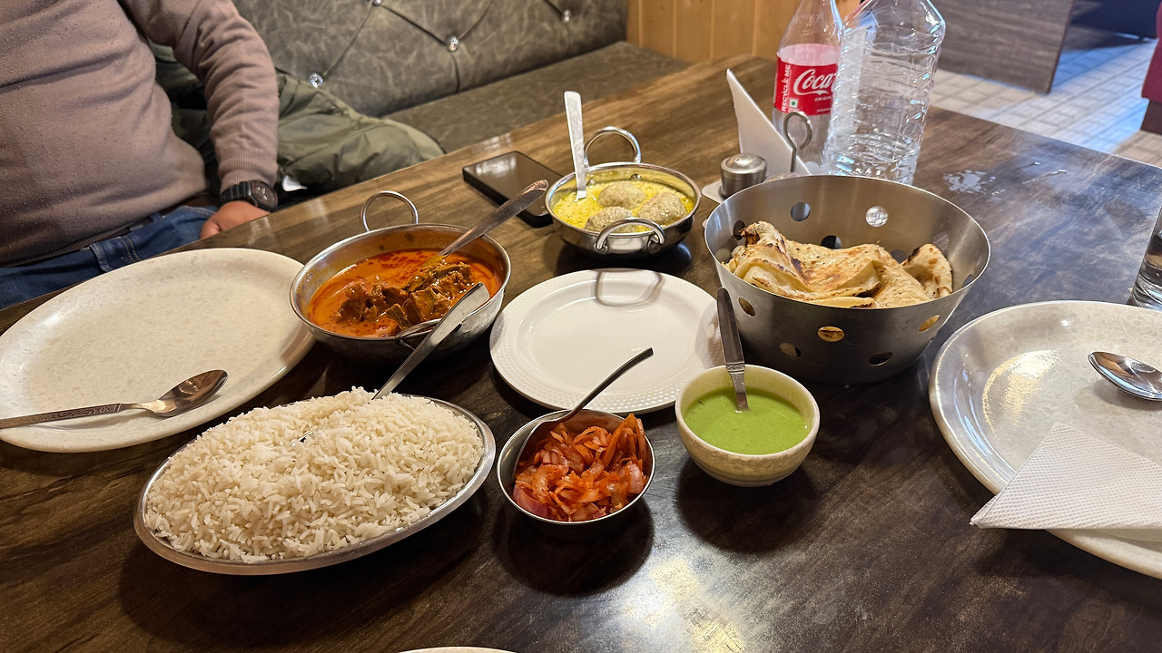 라다크 인들은 동양인과 외모가 비슷해 피부가 까맣고 투박한 한국인들은 종종 라다크인으로 오해받기도 한다 합니다. 라다크는 양고기가 저렴하면서도 맛이 좋다 하는데 남걀이 골라준 메뉴는 모두 훌륭했습니다