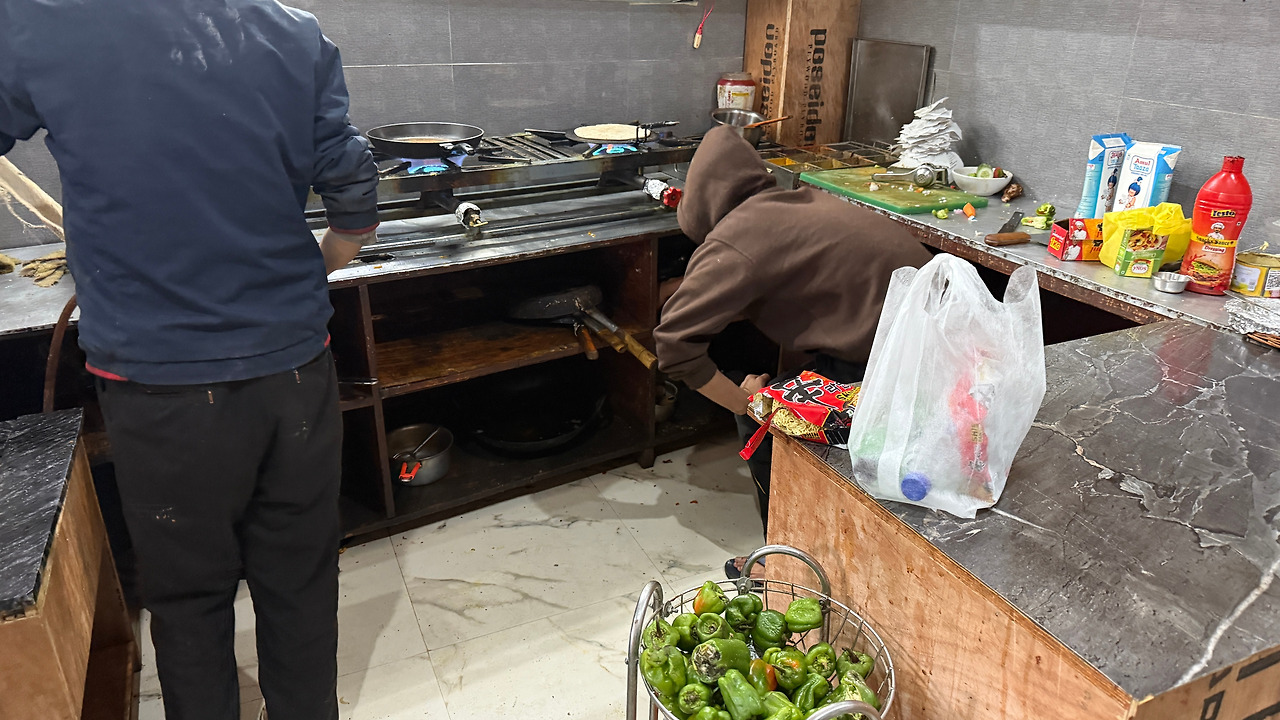 먼 여행을 마치고 레의 호스텔로 돌아왔습니다. 식당에서 쓰는 주방이 있었는데 양해를 구하고 인도인들 사이로 비집고 들어가 냄비를 올려 라면을 끓였습니다. 낯설고 어려웠던 라다크의 생활도 점점 익숙해집니다.