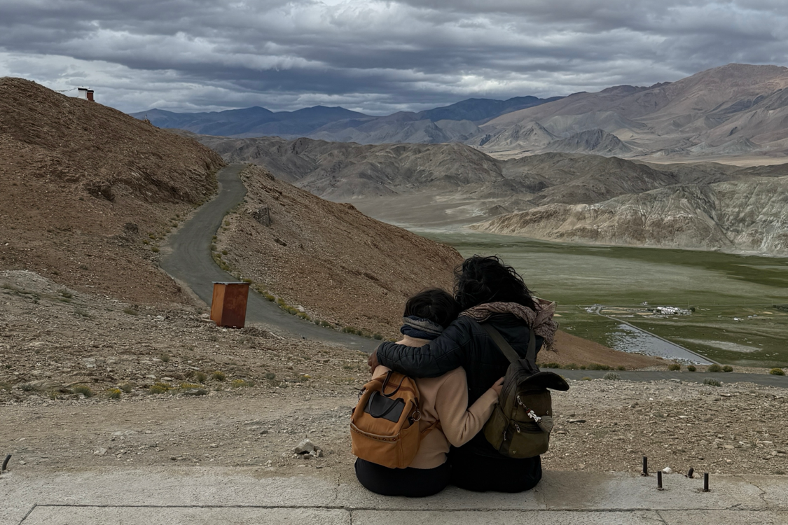 눈 덮인 설원과 황량한 사막이 한눈에 들어오는 풍경. 인도 커플의 모습을 사진 한 장 남겼습니다. 히말라야 오지에서도 사랑의 모습은 여느 곳과 다르지 않습니다.