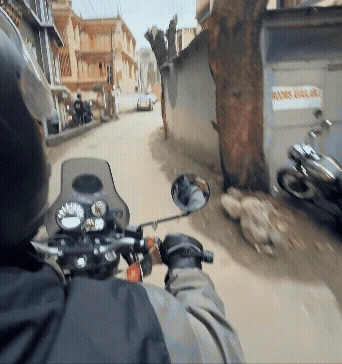 샴 밸리로 가는 픽업을 예약하고 호스텔 돌아오는 길, 바이크를 타고 있던 크리슈나를 또 우연히 만났습니다. 크리슈나는 함께 산티 스투파에 가자 했고, 그게 뭔진 모르겠지만 일단 오토바이 뒷자리에 올라탔습니다.