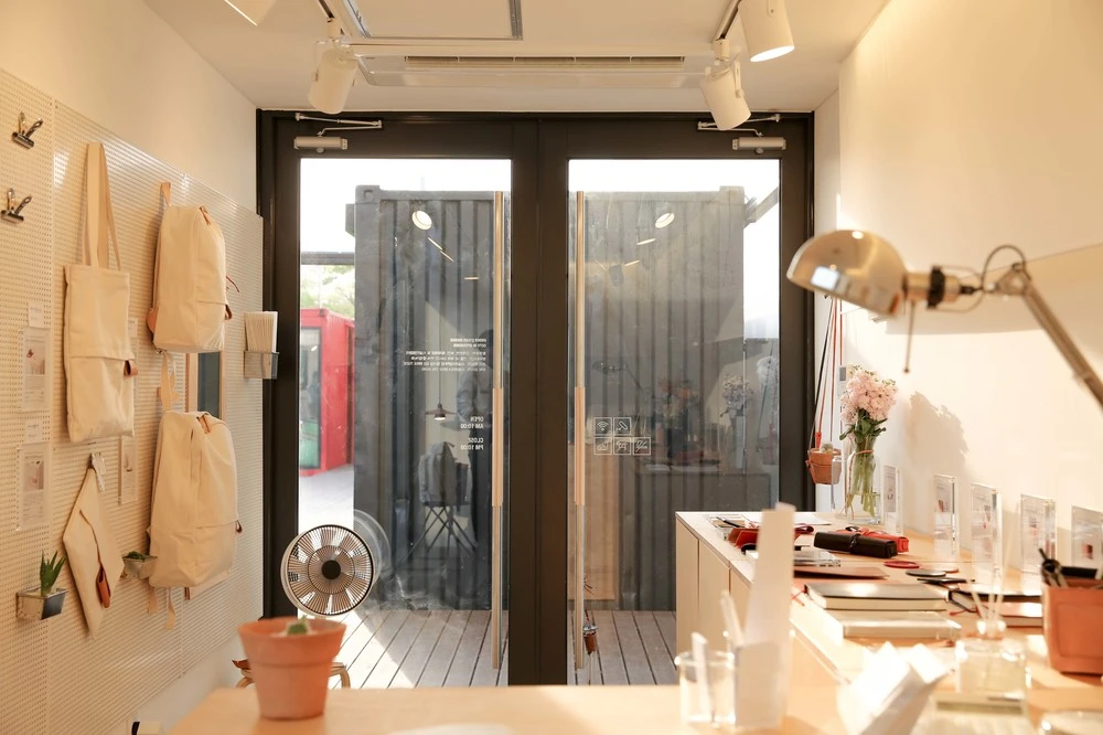 진심제작소를 디자인하며 가장 중점을 둔 부분은 협소한 컨테이너의 내부가 좁아 보이지 않도록 디자인하는 것이었다. 우리는 제품이 올려지는 매대를 높게 디자인하여, 방문객들의 시선이 제품에 집중될 수 있도록 하였다. 동선이 제한적이지만 시각적으로 느껴지는 공간감을 더 크게 보이도록 디자인한 것이다. 외부에서 가장 눈에 띄는 윈도우의 공간에 직원의 움직임이 보일 수 있게 하였다. 초기의 언더스탠드에비뉴는 내부에 사람이 보이지 않으면, 운영을 하고 있는 매장인지 아닌지를 구분하기 어려울 만큼 정적인 느낌이었기에 우리는 오히려 직원의 있는 자리를 윈도우에서 볼 수 있게 구성했다. 움직이는 사람이 있는 윈도우는 진심제작소를 더욱 생동감 있어 보이게 했고, 사람의 온기가 느껴질 수 있 수 있었다.