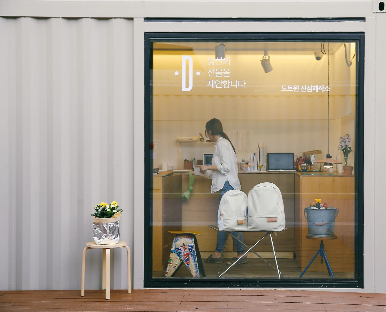 지상 1~3층 높이의 컨테이너 116개로 구성된 언더스탠드에비뉴는 2016년 4월경 서울숲 옆 공터에 완공됐다. 언더스탠드에비뉴는 청년층의 창업 지원, 다문화가정 청소년 직업 훈련 등 취약계층을 위한 자립 공간으로 활용하자는 민간단체의 아이디어와 대기업의 사회공헌기금 기부, 성동구청의 지원이 결실을 이뤄낸 사례로 알려져 있다. 현재는 아르콘이 신한은행과 함께 청년 창업 지원 시설로 운영하고 있다고 한다. 도트윈은 언더스탠드에비뉴가 완공되던 그 해, 첫 입주사로 함께 했다. 우리가 그곳으로 입주하게 된 것은 그 당시 언더스탠드에비뉴가 초기 창업가들을 위해 판매 공간을 지원했던 한 프로그램 덕분이었다. 그 덕에 우리는 언더스탠드에비뉴에서 약 4개월의 기간 동안 도트윈의 팝업스토어를 운영할 수 있었다.
