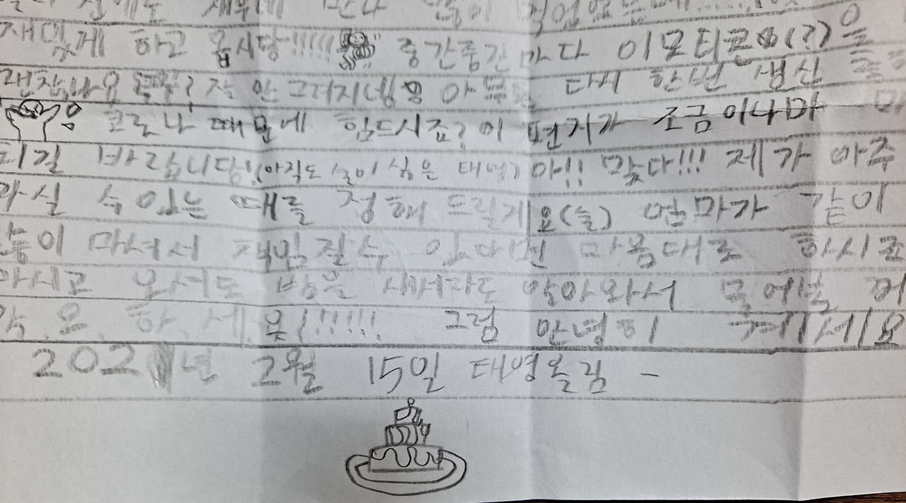 퇴근 후 딸아이가 아빠 생일이라고 선물을 내밉니다. 정성껏 쓴 편지인데요. 보고 보고 또 봐도 심금을 울립니다. “코로나 때문에 힘드시죠? 이 편지가 조금이나마 마음의 위로가 되길 바랍니다.”