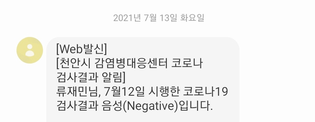 결과가 나오기까지 만 하루 동안 가족과 떨어져 격리했습니다. 불안과 초조, 공포 속에 시간을 보냈습니다. 아침에 나올 거라던 검사 결과는 오후가 다 돼서야 나왔습니다. 다행히 음성이었습니다. 밀접 접촉자가 아니라 바로 일상으로 복귀했습니다.