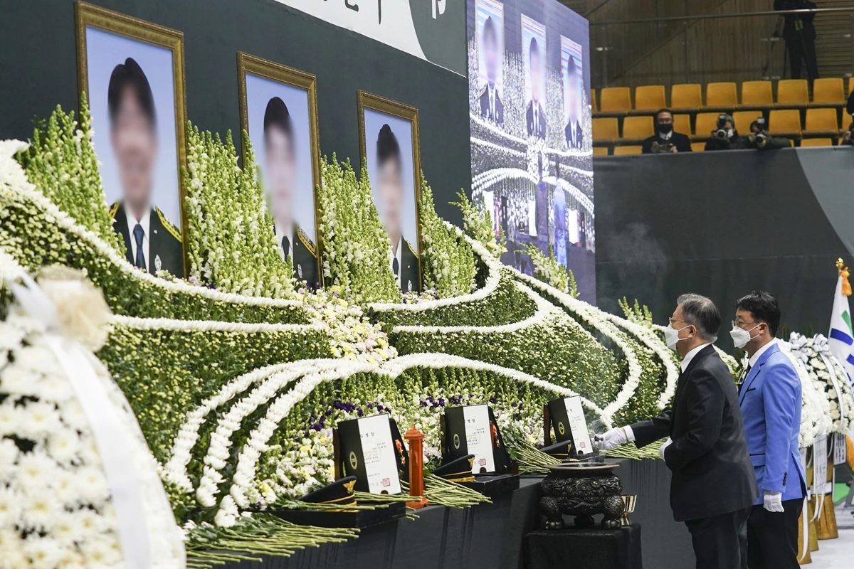“문 대통령은 이흥교 소방청장에 재발 방지 대책과 소방대응체계 정비를 지시했으며, 장의위원장인 오병권 경기도지사 권한대행에 공사 현장의 위험 물질 관리 대책 마련을 당부했습니다.” -순직 소방관 합동 영결식 관련 박경미 청와대 대변인 서면 브리핑 (2022. 1.8)