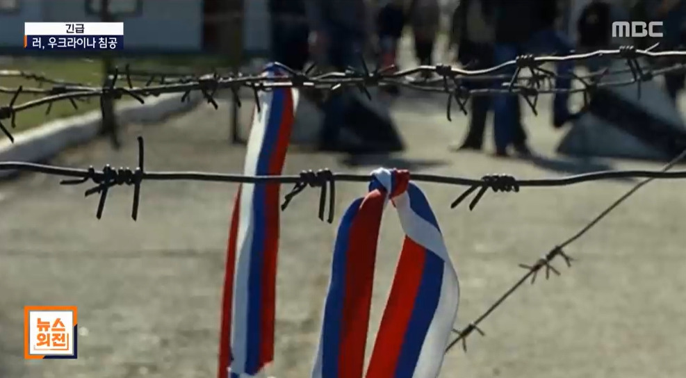 러시아와 국경을 맞대고 있는 우크라이나의 나토 가입은 비핵화된 우크라이나에 미국과 유럽의 부대나 공격 무기가 들어올 수 있다는 걸 뜻합니다. 러시아의 서부 국경 안보에 직접적인 위협이 생기는 겁니다. 2022년 2월 24일 MBC <러시아의 우크라이나 침공, 왜?> 중