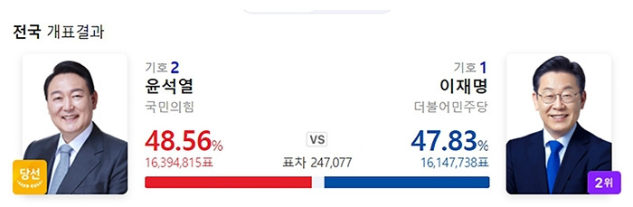 여야 모두 선거 캠페인 내내 ‘국민통합’을 약속했습니다. 그 약속을 지키려면 이긴 쪽이 진 쪽을 보듬어야 합니다. 금방은 어렵겠죠. 마음 추스를 시간이 필요할테니까요. 그렇다고 못할 것도 없습니다. 48%의 국민이나 47%의 국민이나 다 같은 ‘대한국민’이니까요. 역대 최악의 비호감 대선이라고 했어도, 국민들은 역대 최고 사전투표를 하며 높은 관심을 보였으니까요.