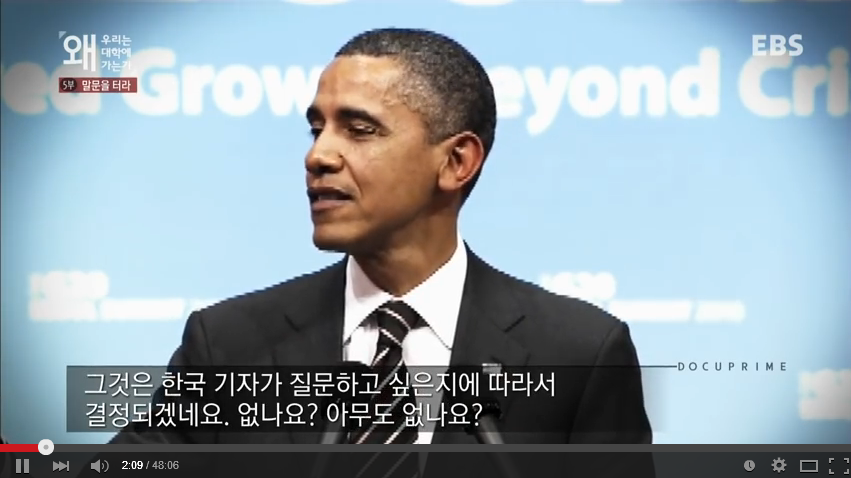 EBS '왜 우리는 대학에 가는가-말문을 터라' 유튜브 영상 중.
