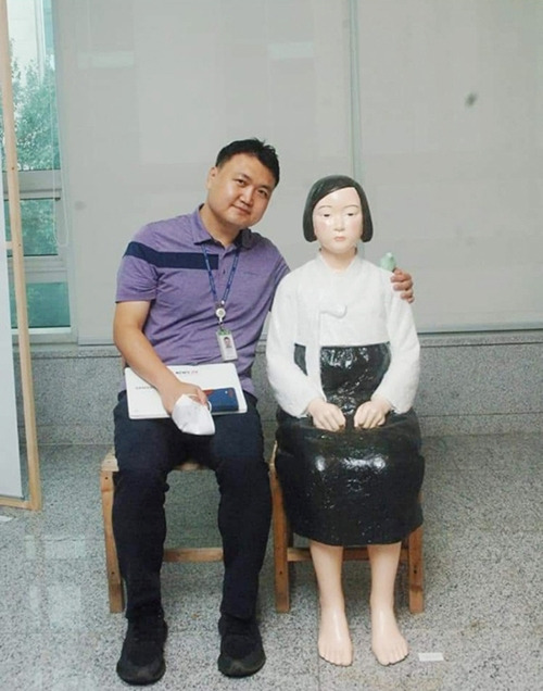 2년 전, 국회의원회관에서 평화의 소녀상 챌린지 캠페인을 진행했는데요. 맨발로 앉아 있는 소녀의 어깨를 안아 주었습니다. 2년 전, 국회의원회관에서 평화의 소녀상 챌린지 캠페인을 진행했는데요. 취재를 하러 가다 행사장 한쪽에 자리한 평화의 소녀상 옆에 앉아 사진을 찍었습니다. 맨발로 앉아 있는 소녀의 어깨를 안아 주었습니다. 사흘 후면 광복절입니다. 올해로 77주년입니다. 광복절 하루 전인 8월 14일은 ‘위안부 기림의 날’입니다. 비극적 역사의 청산은 아직 끝나지 않았습니다.