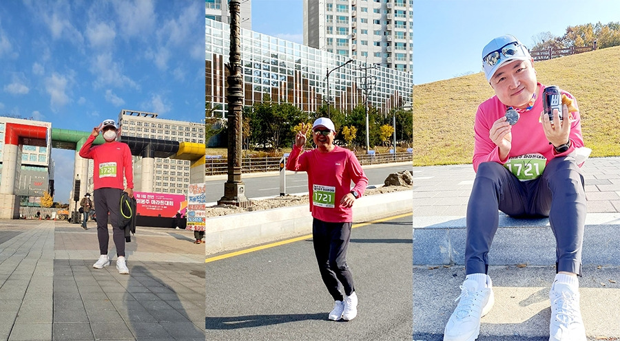 왼쪽부터 뛰기 전, 뛰는 중, 뛴 다음 간식 타임~!이봉주 선수는 2020년 1월 발병 이후, 원인 모를 복부 경련과 함께 허리를 제대로 펴지 못해 일상생활에 어려움을 겪고 있다고 합니다. 그 사연을 접한 천안시체육회에서 그를 기념하는 대회를 처음 기획했습니다. 코스는 이봉주 선수가 직접 설계해 의미를 더했습니다.