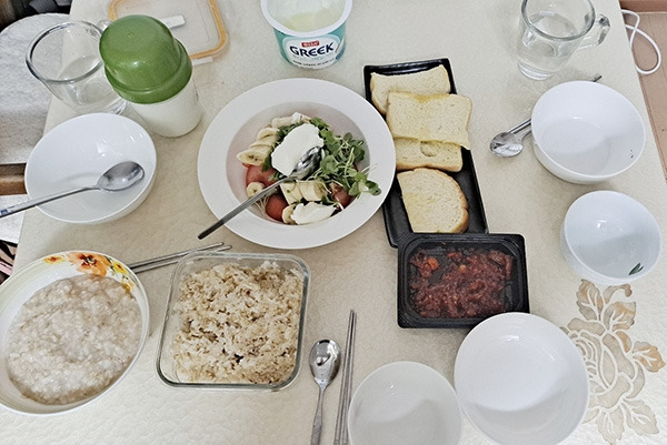 삼시세끼 식모살이가 따로 없습니다. 오늘 아침인데요, 부실 식단은 아니라 아침은 원래 가볍게 먹는 것이 가풍입니다. 끙끙!