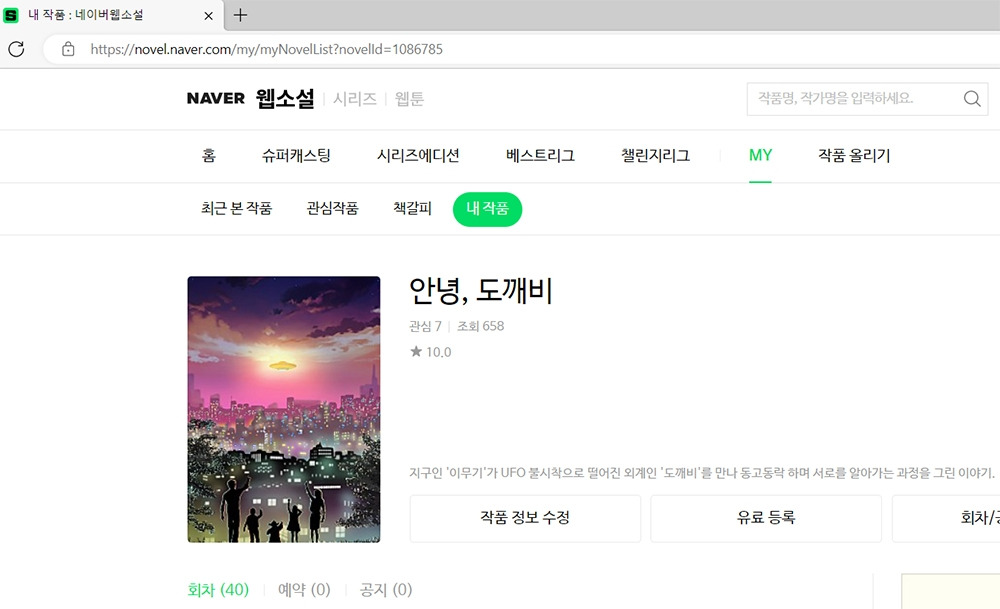 네이버에 유료화를 신청했다가 그만뒀다. 유료 신청 기준에 맞도록 글과 분량을 재구성해야 했다. 어떻게 해야 하는지 통 이해가 되지 않았고, 번거롭고 수고로운 작업을 해야 한다는 생각에 귀찮아졌다. 최종적으로 무료 연재로 마무리했다. 작년 12월 19일 쓰기 시작한 소설은 꼭 두 달 만인 2월 18일로 끝났다.