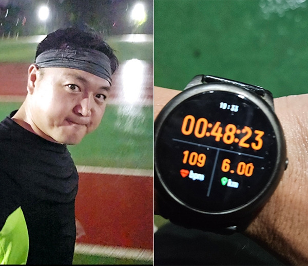 그리고, 냅다 뛰었다. 운동장 트랙은 비가 내린 탓에 젖어 있었고, 더러는 미끄러웠다. 비가 오다 잠깐 멈춘 순간, 체감 습도는 99% 이상이었다. 지금 한가롭게 습도 타령할 때가 아니지, 라며 비가 오기 전에 얼른 출발했다. 웬걸, 2킬로미터 구간부터 비가 뚝뚝 떨어졌다.