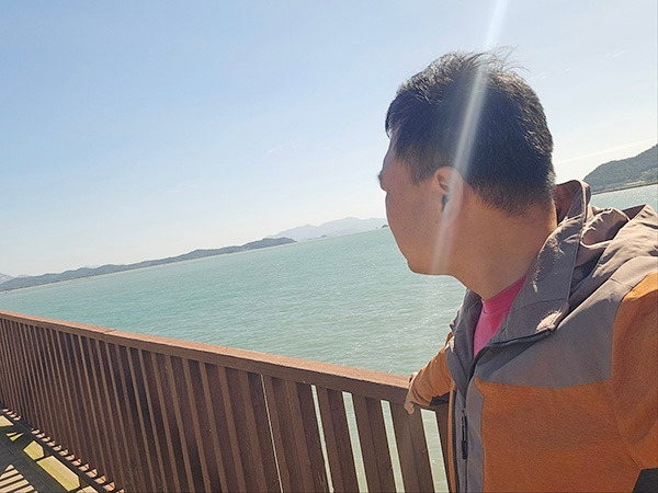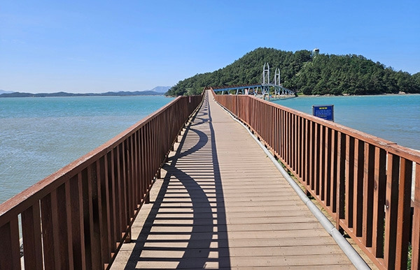 다행히 출렁다리는 출렁이지 않았다. 그래서 중간까지 걸어갈 수 있었다. 다리 중간에서 먼바다를 바라본다. 마천왕이 타고 다녔던 목선의 동선이 대략 어떻게 됐을까 상상하면서. 천왕이 왜에서 타고 오다 침몰한 뱃길을 떠올리면서. 그 길은 천왕의 아들 월과 딸 성이 오간 길이기도 하다. ‘달’과 ‘별’을 따 지은 오누이의 질곡의 삶도 바닷바람에 아른거리며 실려 오는 듯했다.