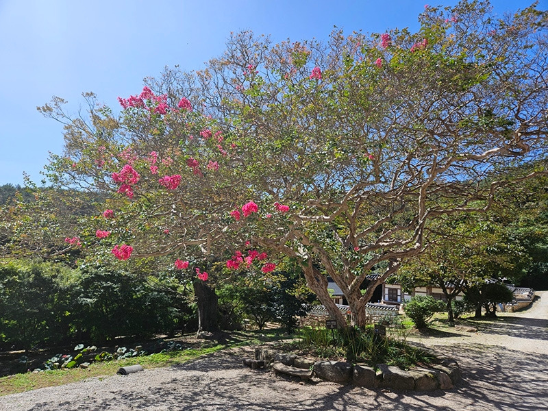 만경루 앞 배롱나무. 10월 초 모습입니다.