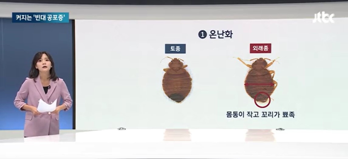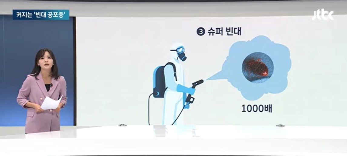 우리나라 사람들은 지난 몇 십 년 빈대가 없었기 때문에 상대적으로 고통과 공포를 크게 느끼는 겁니다. 문제는 이런 빈대의 내성, 갈수록 강력해지고 있다는 점입니다. 서울대 연구팀이 최근 발표한 논문을 보면요. 빈대에는 피레스로이드라는 성분 살충제를 사용하는데 열대 빈대는 이 성분에 내성을 가지고 있습니다. 살충제로는 박멸이 잘 안되고요 어중간한 살충제, 뿌리고 살아남는 과정이 반복될수록 내성만 강해지고 있습니다. 급기야 기존보다 1000배 센 살충제를 뿌려도 죽지 않는 슈퍼 빈대도 확인됐습니다. 2023년 11월 13일, jtbc, <살충제도 안 먹히는 ‘슈퍼 빈대’까지 출현…지구촌이 ‘빈대 포비아’> 중