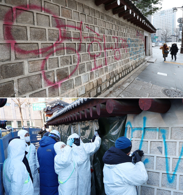 문제는 경복궁 내·외부를 감시하는 429대의 CCTV를 야간 근무시간인 오후 6시부터 다음 날 오전 9시까지 고작 2명이 감시한다는 점이다. 2023년 12월 18일, 서울경제, <경복궁 CCTV 429대 감시에 고작 2명…순찰 강화에도 예견된 경복궁 담장 ‘낙서테러’>