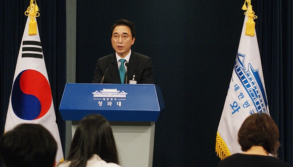 문재인 정부 박수현 초대 대변인이 청와대 춘추관에서 브리핑하고 있는 모습.