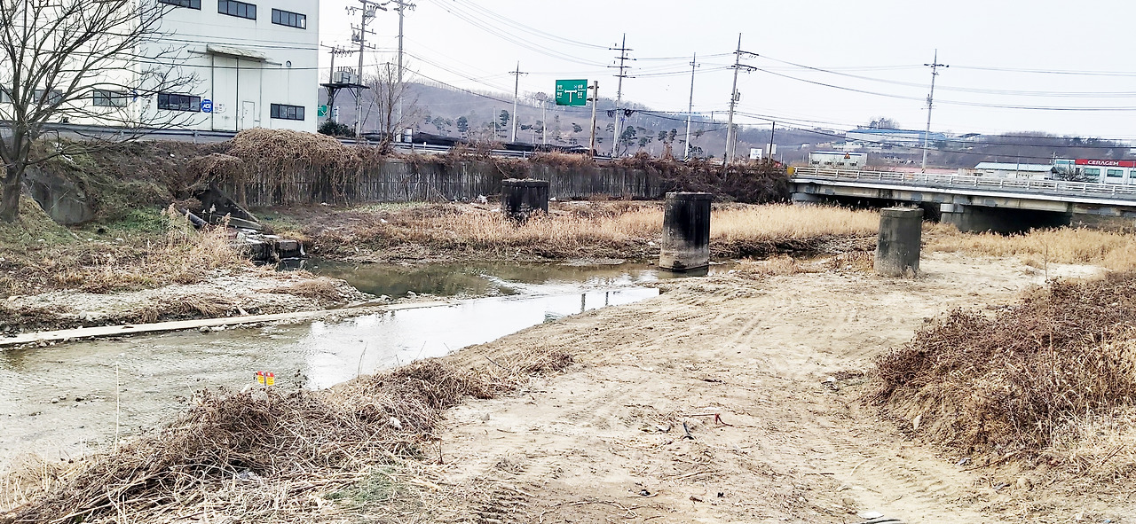 한참을 걷다 낯익은 옛 선로 주변에서 발걸음을 멈추었습니다. 세월의 풍파를 거쳐서인지, 40년 전 모습은 거의 남아 있지 않았습니다. 선로가 놓였던 교각만 덩그러니 남아, 과거의 흔적을 떠올려 줄 따름입니다. 교각 아래에는 어릴 적 물장구치던 개울이 있는데요. 폭은 좁아졌고, 가뭄에 수량도 적었습니다.