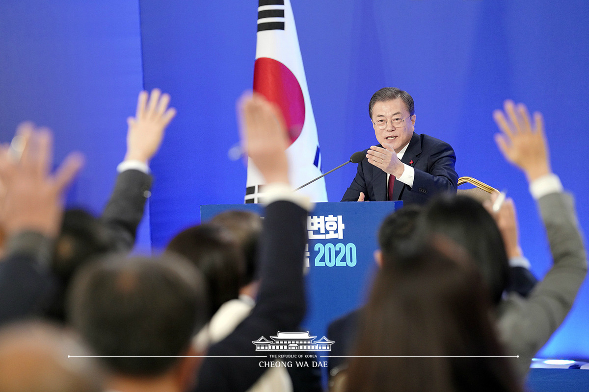 올해 1월 문재인 대통령과 청와대 출입기자들의 신년 기자회견 모습입니다. 출처: 청와대 홈페이지